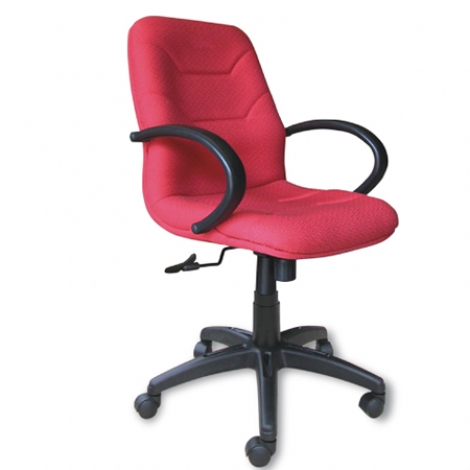 Ghế lưng trung bọc vải, đệm tựa liền khối, chân tay bằng nhựa.