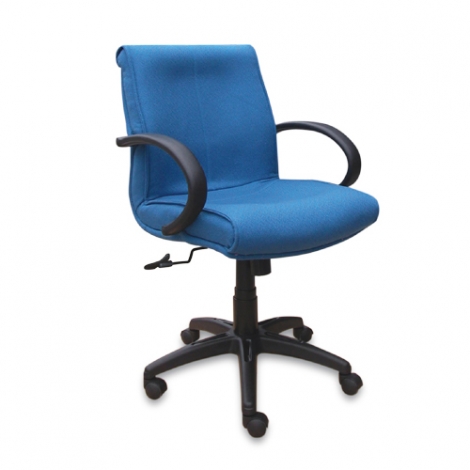 Ghế lưng trung bọc vải, đệm tựa liền khối, chân tay bằng nhựa.