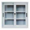 Tủ sắt sơn tĩnh điện gồm 5 khoang, bên trên gồm 2 khoang cánh kính: một khoang cánh lùa và một khoang cánh mở. Bên dưới 2 khoang cánh sắt mở.KT kính cánh mở: 1027 x 315 x 3 ( mm)..KT kính cánh lùa: 1019 x 346 x 3 ( mm)